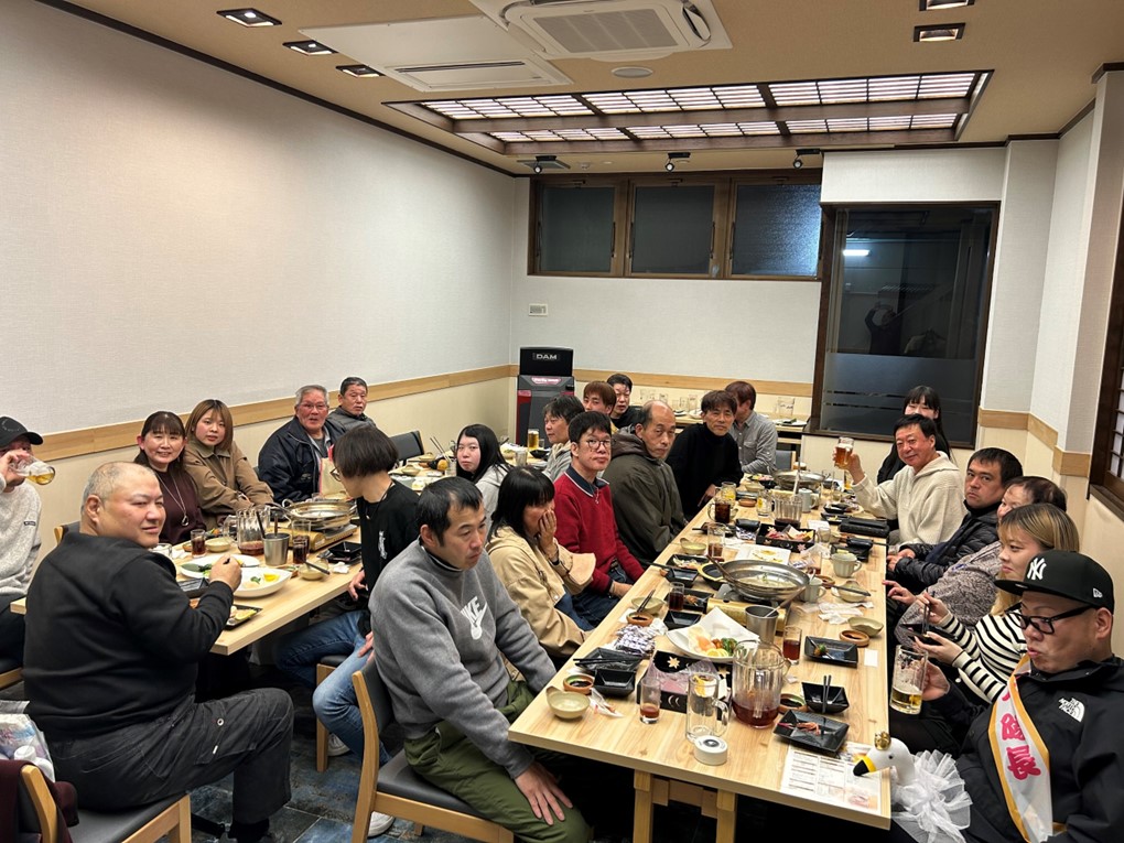 12月7日㈯広島事業所忘年会を開催しました。和やかな雰囲気の中、笑顔溢れるひとときを皆で楽しみました。 ビンゴゲーム大会で景品贈呈。全員景品が貰えるようにメンバーで景品を準備してくれており最後まで白熱、無事幕を閉じました。